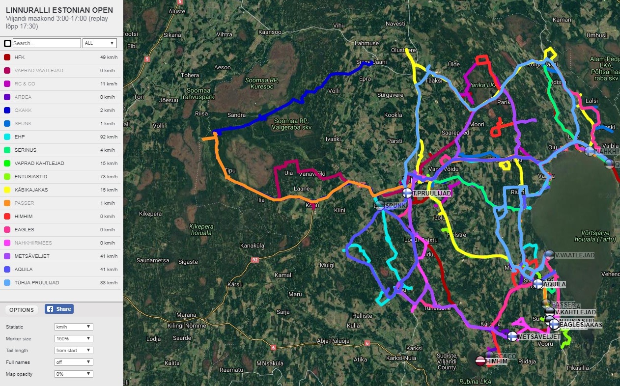 2017 – XXIII Estonian Open -linturallin (la 12.8.2017 klo 3:00-17:00) tulokset